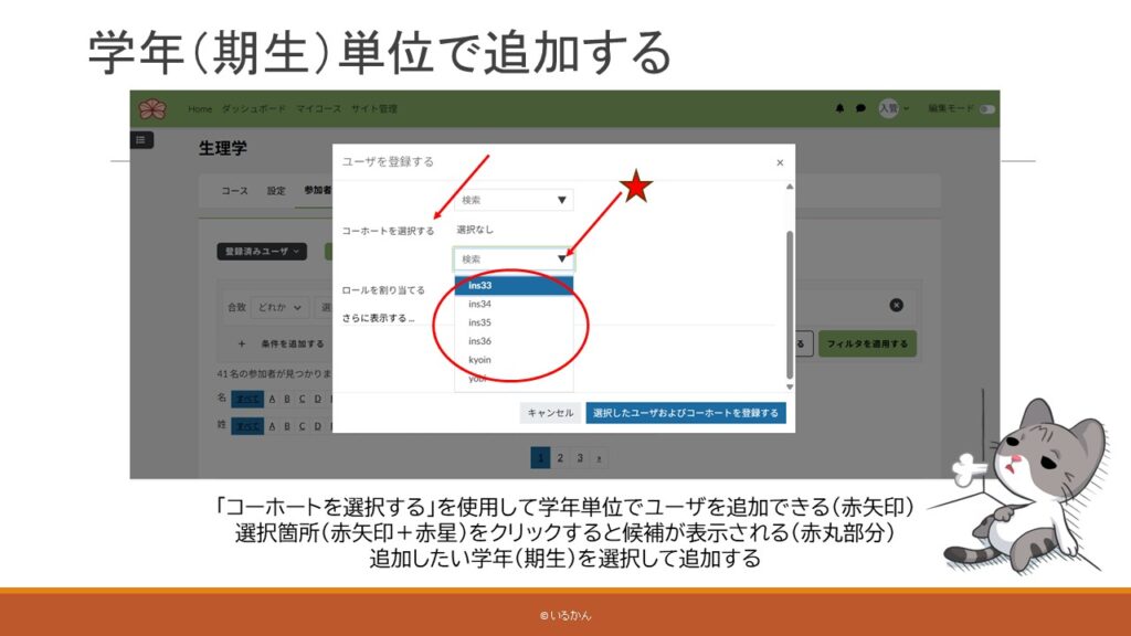コースに学生を追加する